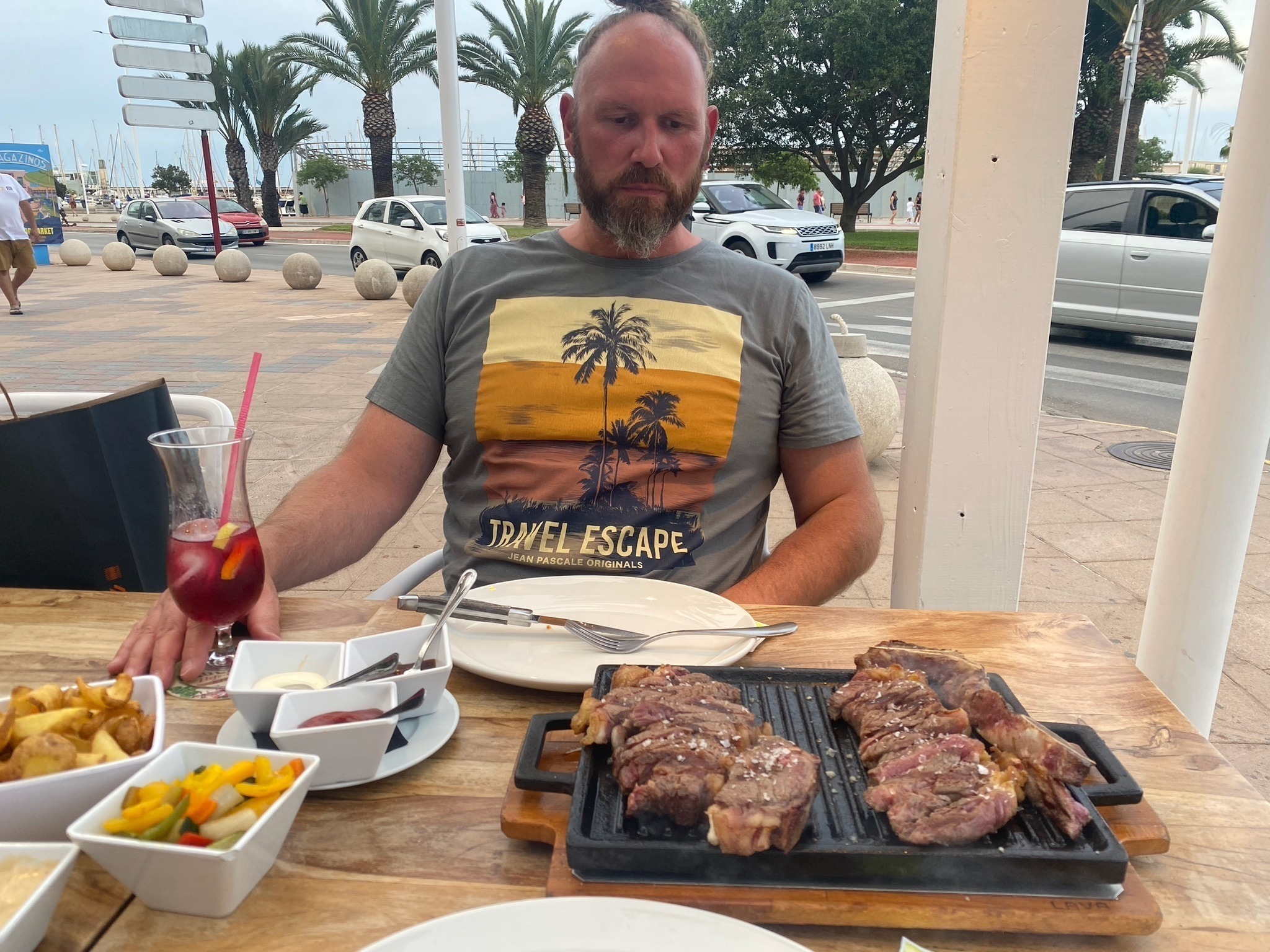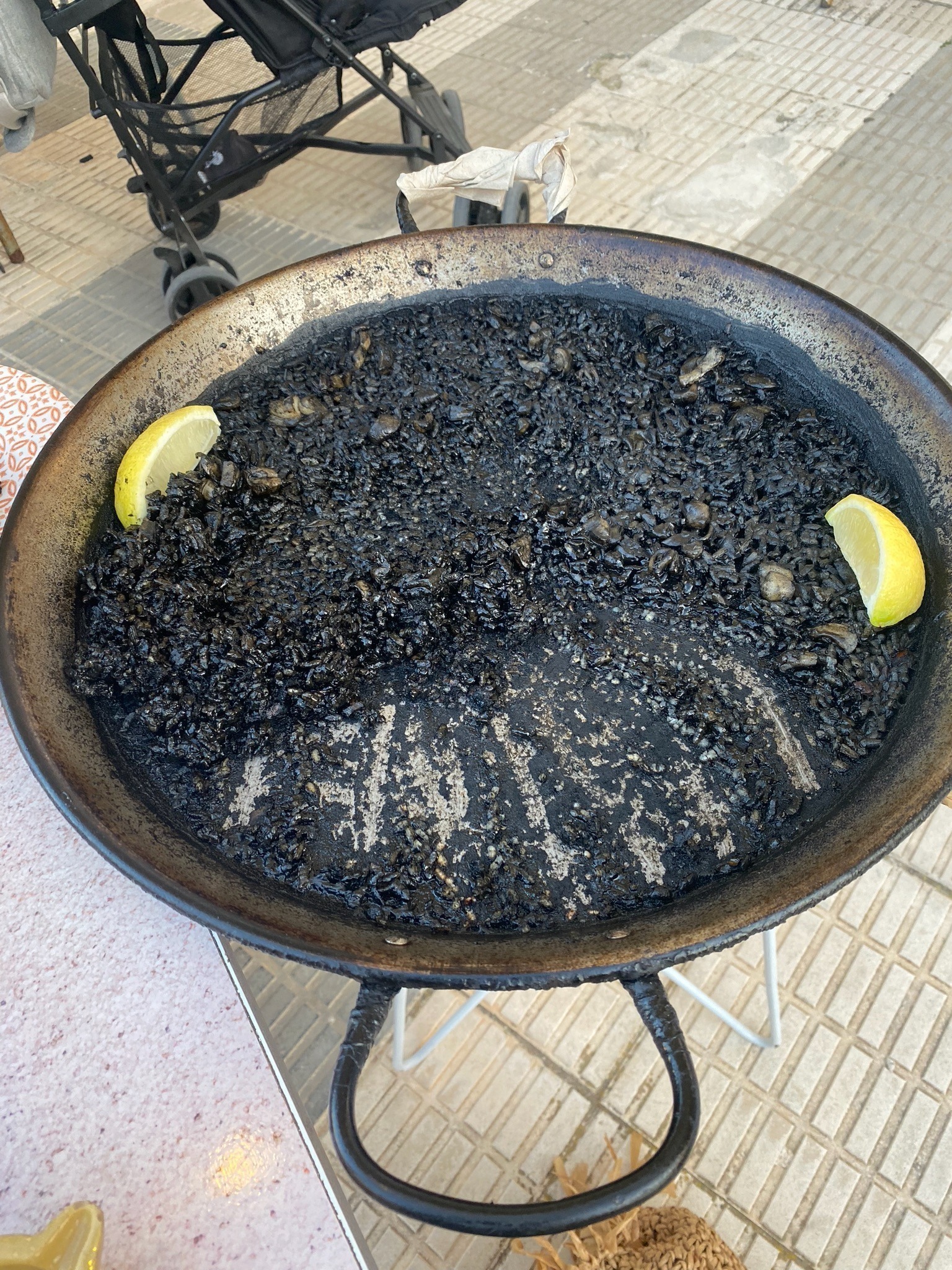 Das hier hat Flo natürlich nicht alles allein verdrückt. Das dry-aged mit gegrilltem Gemüse und Kartoffel-Wedges genossen wir zusammen, sooo lecker!Neben Denia waren wir auch zweimal in Oliva selbst. Das Stöbern und Flanieren auf all den Promenaden lieben wir! Am letzten Abend wurde dann die schwarze Paella verkostet, die wir vorher dort entdeckten.